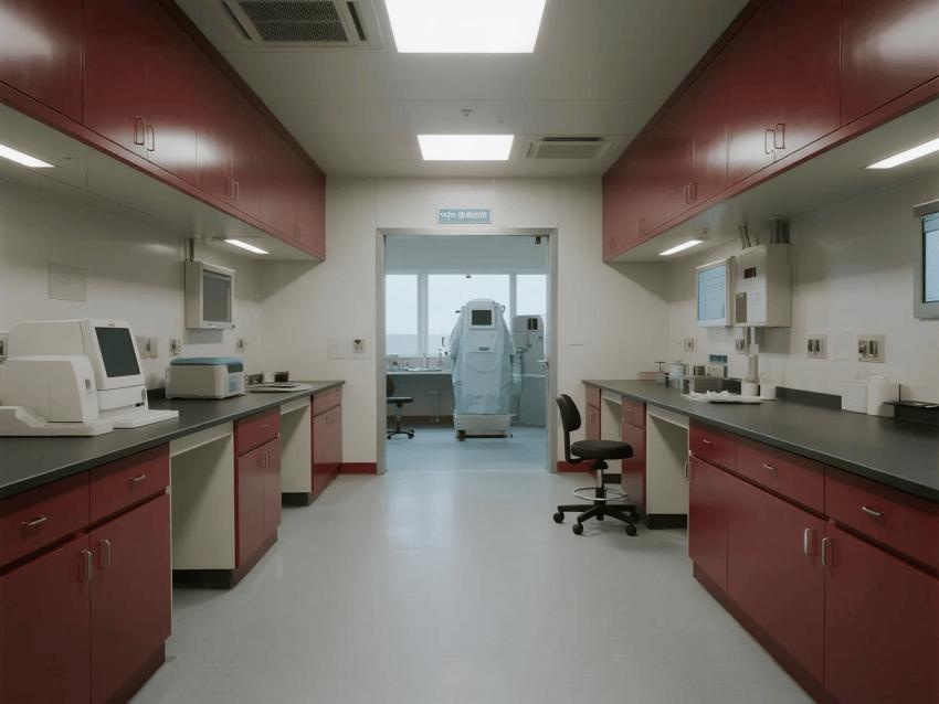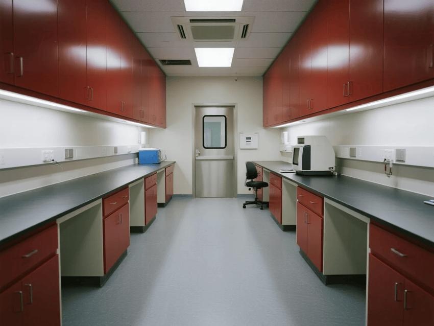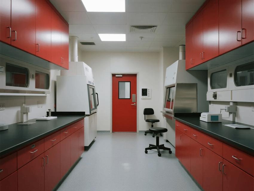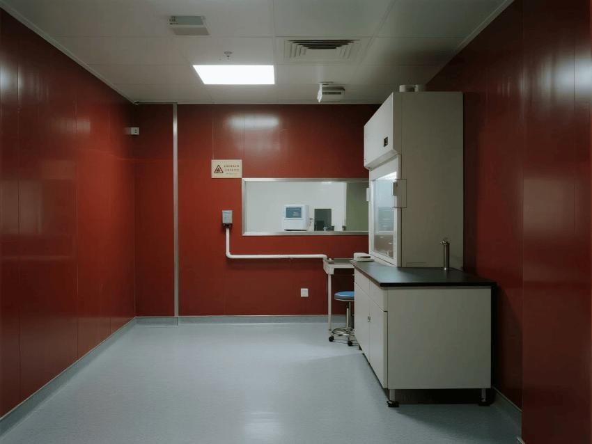 本實(shí)驗(yàn)室嚴(yán)格遵循BSL-3級生物安全標(biāo)準(zhǔn),通過深紅彩鋼板與淺灰環(huán)氧地坪的強(qiáng)烈視覺對比,構(gòu)建安全高效的病原體研究空間。