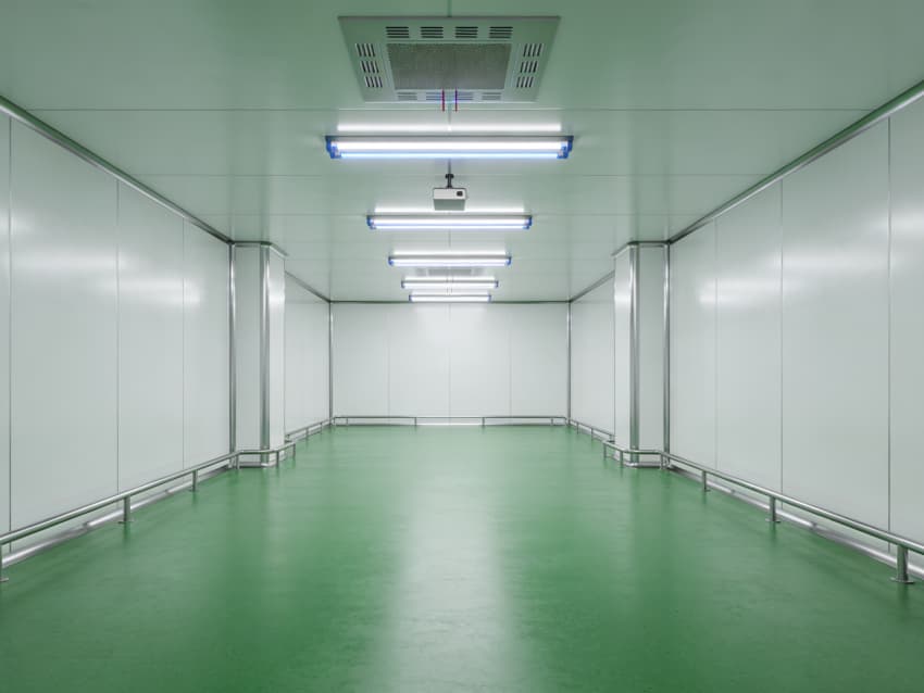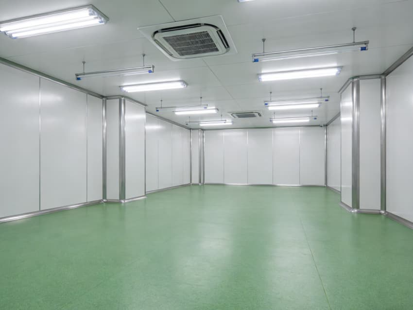 生物制藥生產車間內部采用地面綠色、墻壁白色的統一簡約風格,精準適配GMP潔凈生產要求。地面選用綠色抗菌環氧自流平材質,經多道精密工序處理,兼具強耐磨、抗酸堿腐蝕特性,可耐受高頻次消殺與發酵液殘留清理,表面平整無死角。墻面采用白色食品級潔凈涂層,無縫拼接搭配圓弧陰陽角設計,杜絕微生物滋生,營造潔凈無菌的生產環境。