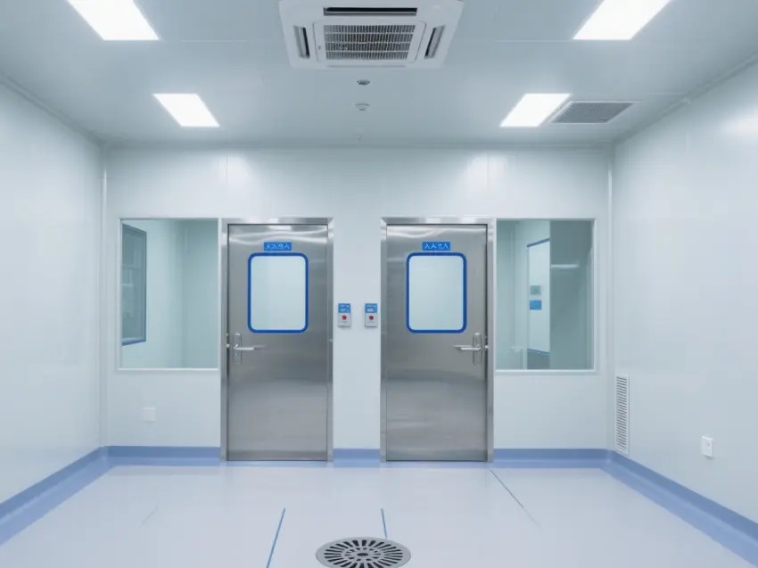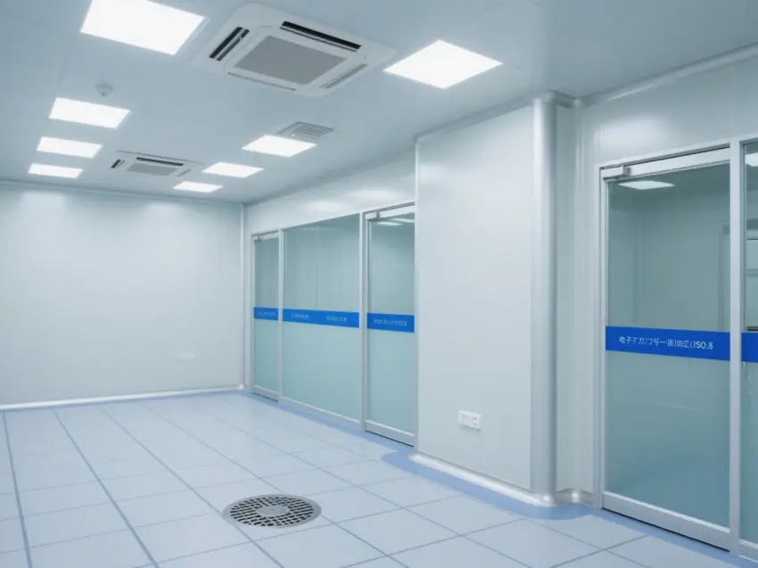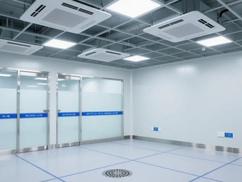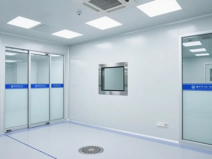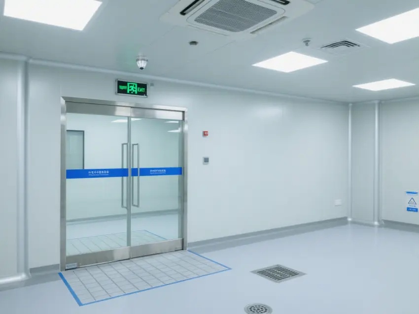 車間的天花板上安裝了多個方形的照明燈,提供充足的光線,同時還有通風設備,確保空氣流通,保持車間內(nèi)的空氣潔凈度達到萬級標準。墻壁上有一些玻璃窗戶和門,便于觀察內(nèi)部情況。