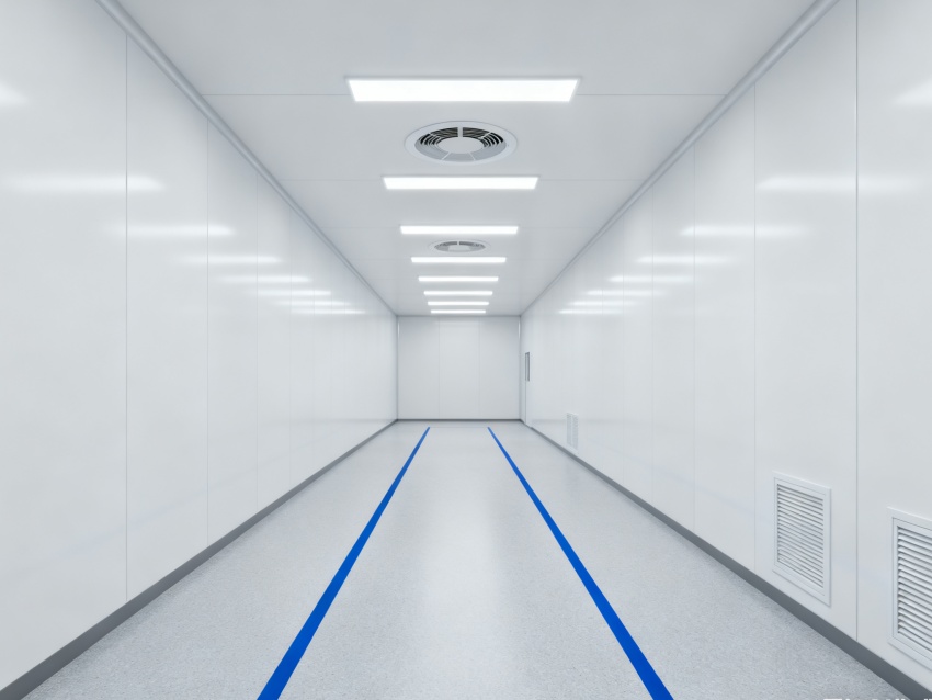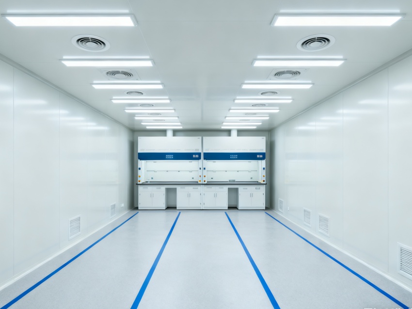 實驗室潔凈度嚴格遵循萬級標準(ISO8級),每立方米空氣中≥0.5μm微粒數≤352000個,采用初效-中效-高效三級空氣過濾系統,配合垂直層流送風設計,實現每小時20-25次空氣置換。室內墻面采用耐腐蝕潔凈彩鋼板,地面為PVC無菌卷材,所有接縫做密封處理;溫度控制在22±2℃、相對濕度50±5%RH,部分區域維持5-8Pa負壓,有效防止交叉污染,符合生物安全實驗室建設規范。