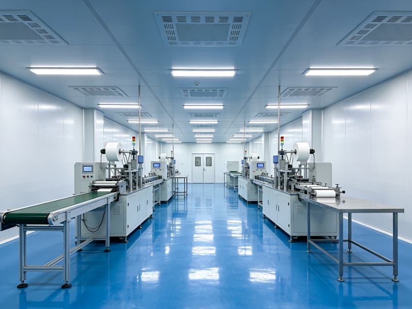 醫(yī)療器械生產(chǎn)車(chē)間內(nèi)部采用灰色地面與白色墻壁的簡(jiǎn)約統(tǒng)一風(fēng)格,嚴(yán)格契合GMP潔凈生產(chǎn)規(guī)范,全方位保障醫(yī)療器械生產(chǎn)的無(wú)菌安全與合規(guī)性。灰色地面選用醫(yī)用級(jí)抗菌環(huán)氧自
