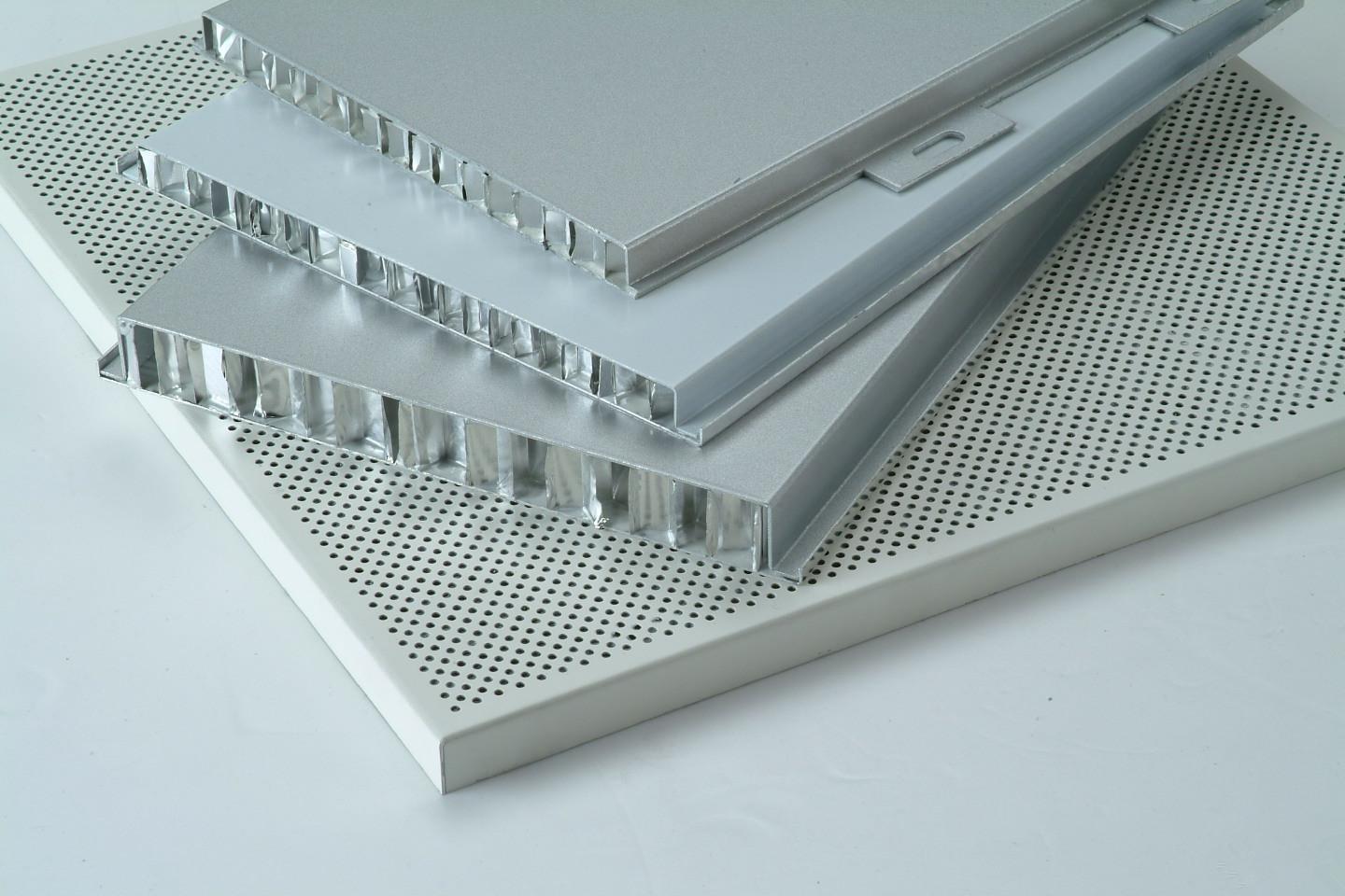 鋁蜂窩板表面采用經(jīng)氟碳輥涂處理的鋁合金板材,中間是符合美國(guó)航空標(biāo)準(zhǔn)的鋁蜂窩,與傳統(tǒng)夾芯板相比,它具有重量輕,平直度好,外形美觀,節(jié)點(diǎn)科學(xué),防火性能好,安裝方便等特點(diǎn)。