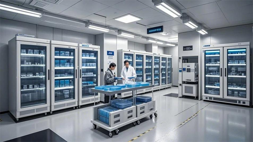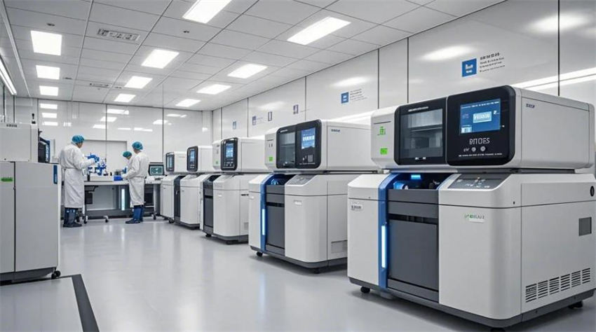 1000平方米生物實驗室整體裝修,現代科技風格,實驗室分為核心實驗區、設備區、樣品存儲區和辦公區。核心實驗區占50%,設備區占30%,樣品存儲區占10%,辦公區占10%。核心實驗區:防靜電環氧地坪(淺灰色),白色彩鋼板墻面和天花板,頂部高效過濾器(HEPA),不銹鋼實驗臺,設備排列整齊。設備區:精密儀器整齊排列,地面為防靜電PVC地板(淺色)。樣品存儲區:冷藏柜和樣品架整齊,溫濕度控制。辦公區:玻璃隔斷,現代簡約辦公桌。整體色彩:白色、淺灰色、科技藍點綴。