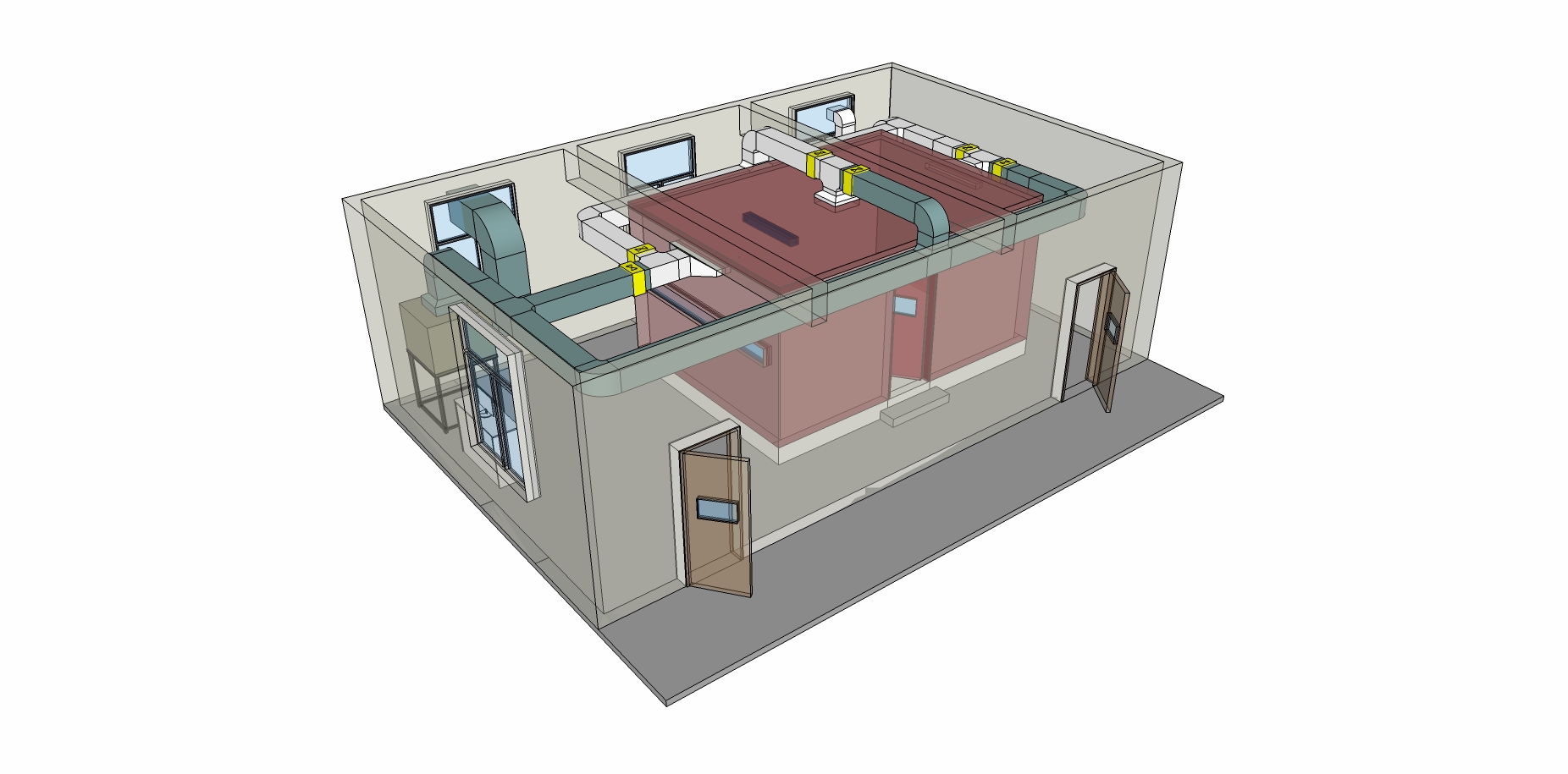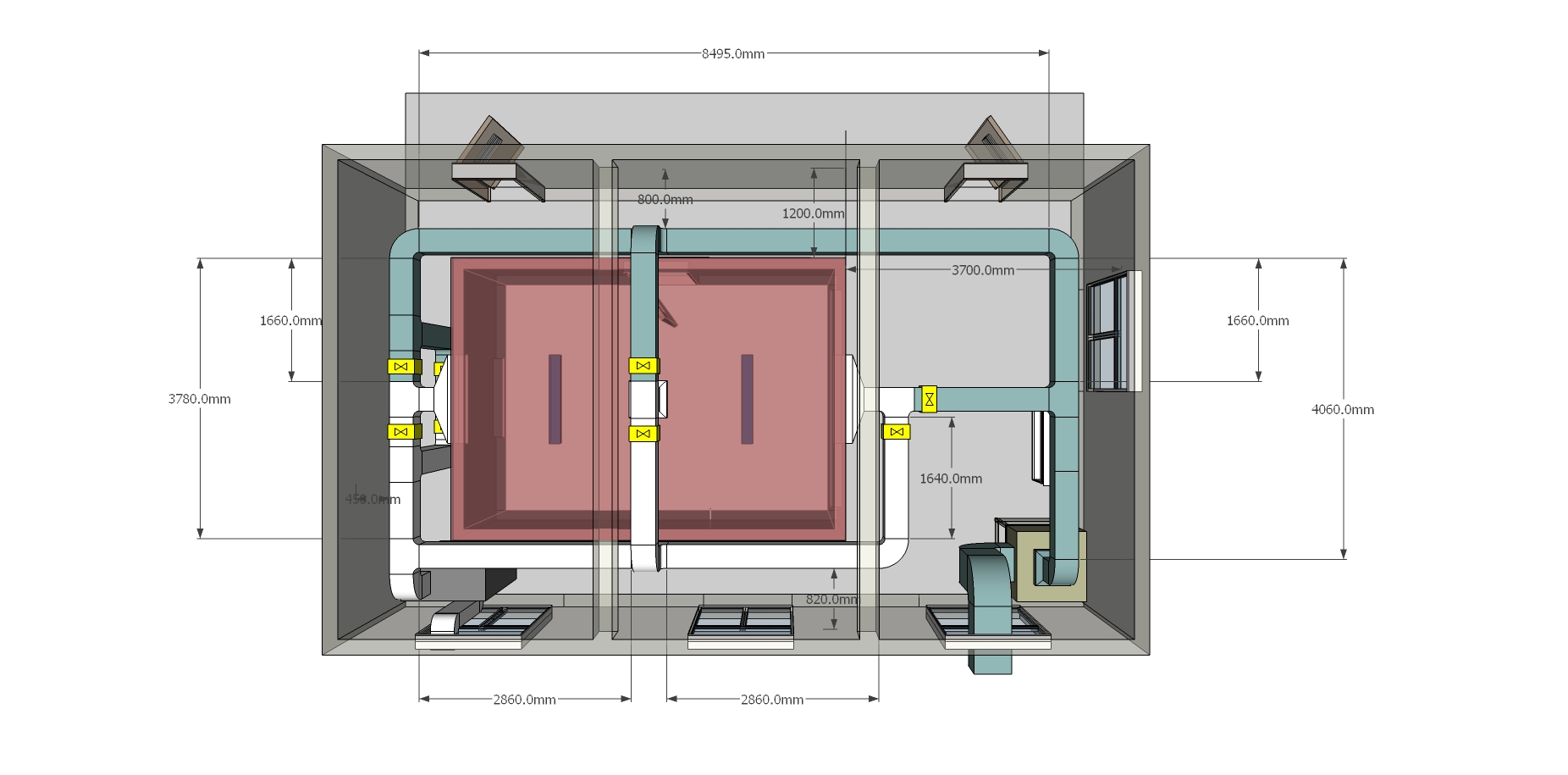 實驗內室尺寸:   5m×3.5m×2.5m(長×寬×高)。