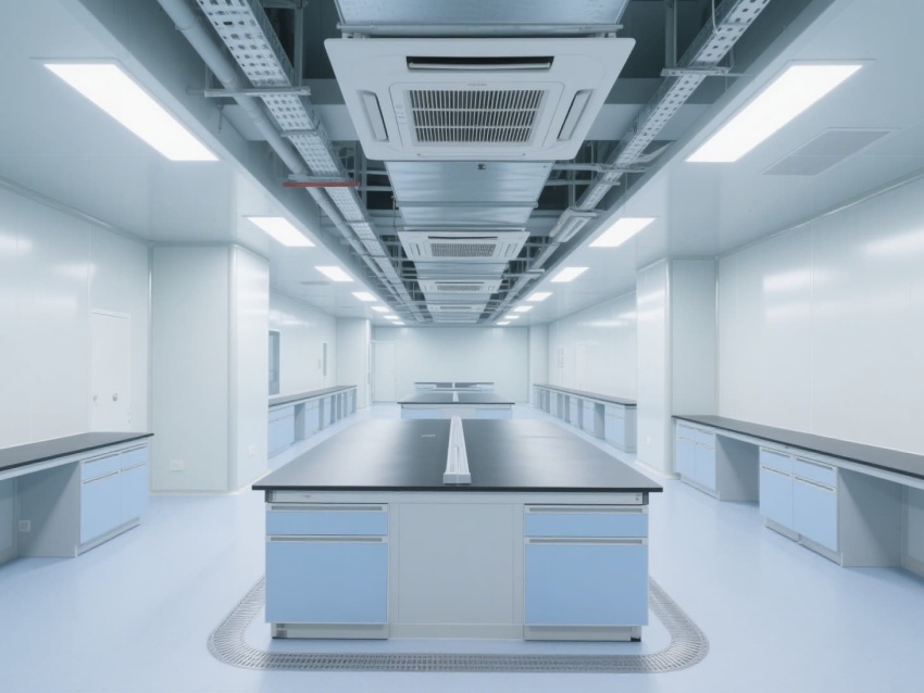 空間配備不銹鋼實驗臺基礎框架,預留耐腐蝕試劑架與電源接口,嵌入式LED燈帶提供400lux均勻照明。恒溫恒濕系統精準控制溫度(20-24℃)與濕度(50-60%),潔凈門窗采用雙層鋼化玻璃,兼顧密封性與觀察便利性,全方位保障實驗數據的準確性與可靠性。